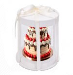 ტორტის გამჭირვალე ყუთი ოთხკუთხა ფორმის, მაღალი ხარისხის მასალისა და მყარი დასადგამი ძირით. გათვლილია ტორტის და ნამცხვრების შესანახად.